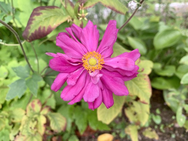 以前 “秋を告げる花” とご紹介させて頂いた『シュウメイギク』。8月末に蕾が開き始め、只今たくさんの花が咲き見頃をむかえています。カラーリーフガーデンでは淡いピンク色のシュウメイギクが大半を締めますが、中には濃いピンクや白のシュウメイギクも見つける事が出来ました。探してみてはいかがでしょうか。色や花弁の違いを見比べてみてください。
